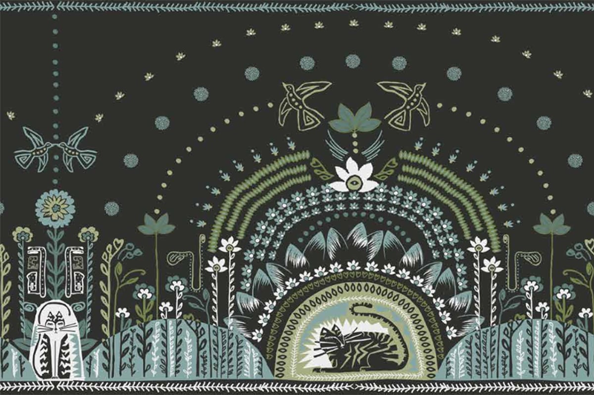 Fresque Diego est un papier peint au motif célébrant la nature. Explosion de couleurs et véritable ode à la joie, il habille chaque intérieur d’une note de fête. Un chat dort paisiblement sous une arche de fleurs et de végétaux. Des couples d’oiseaux amoureux s’envolent dans une évasion pleine de liberté.