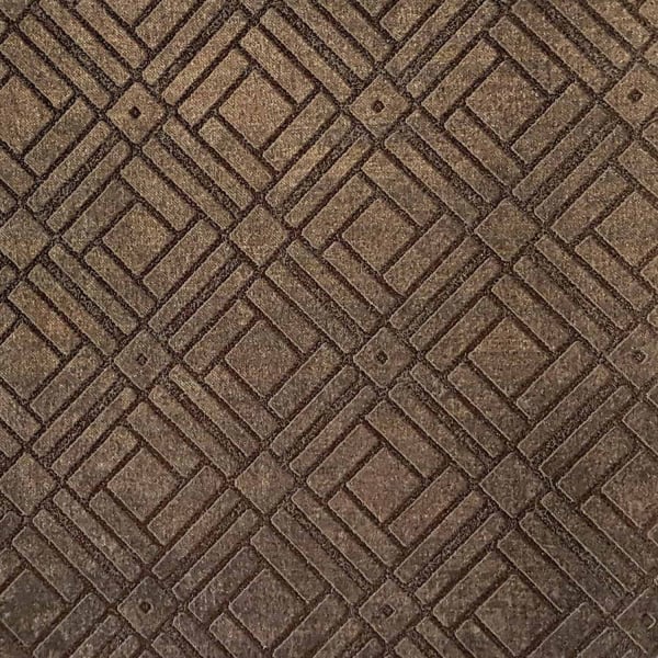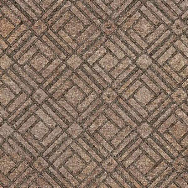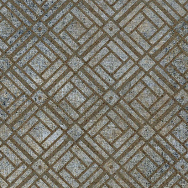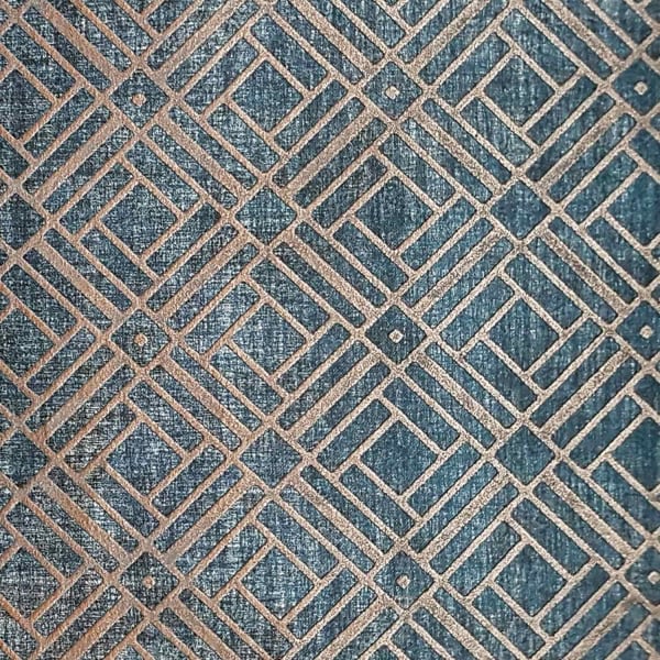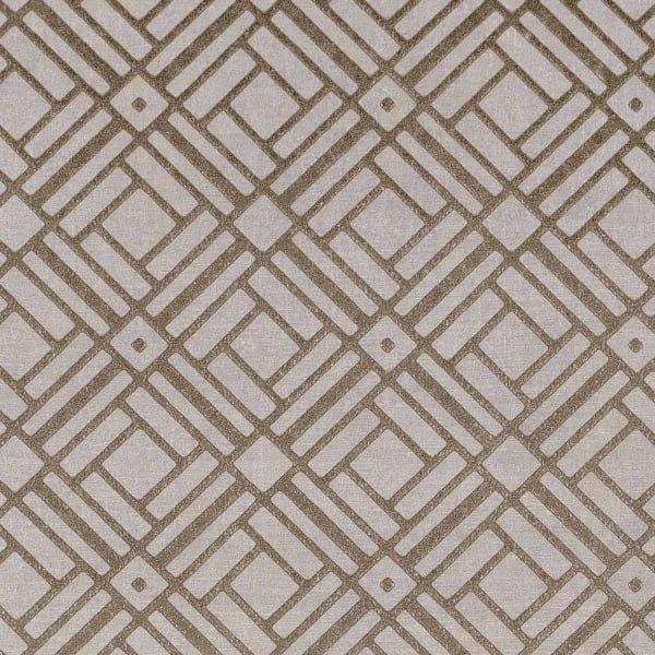 Considérée comme la première des sept merveilles du monde, la pyramide de Khéops fut construite avec des pierres polies révélant sa géométrie dans des jeux d'ombre et de lumière, et son sommet fut recouvert d'électrum. Cet alliage de métaux précieux, composé d'or et d'argent, était utilisé par les Egyptiens pour décorer bijoux, obélisques et pyramides. Kheops inspire cet intissé aux teintes profondes. Le transfert d'un foil souligne les volumes du motif de reflets métalliques. Ils abordent un éclat cuivré, doré ou argenté.