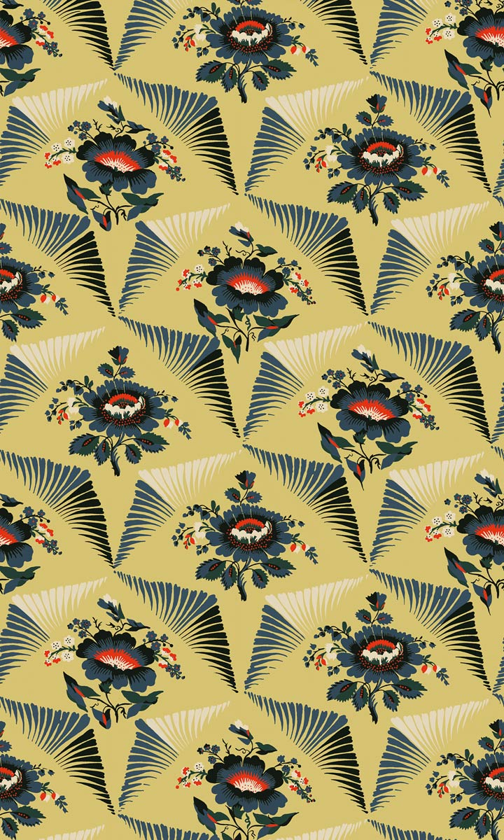 Papier Français s’associe avec la BNF pour la création de ce modèle Pétales de Lave Original. Un papier peint fleuri et coloré qui semble comme dessiné au pinceau. Il est imprimé pour la première fois en 1800 grâce au savoir-faire de la manufacture Bon. C’est l’occasion de faire le choix d’une proposition inspirée de documents d’archives.
