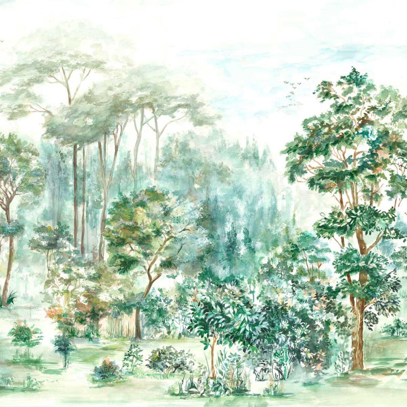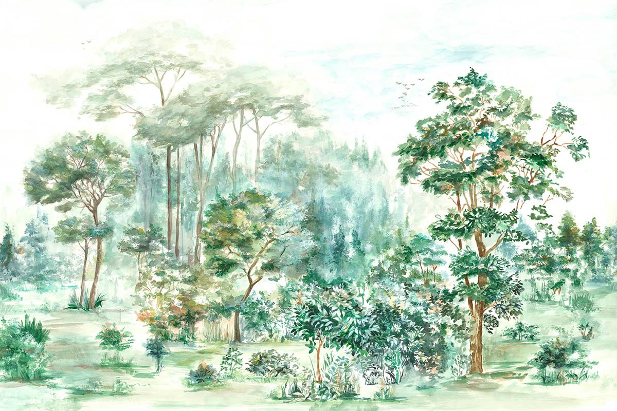 Conçu en lin, le papier peint Ovidio met en scène un paysage forestier réalisé dans une coloration incroyablement nuancée. À l’instar d’un tableau aquarellé, des arbres longilignes au feuillage luxuriant sont dessinés par des coups de pinceau habiles. Cette scène bucolique décore les intérieurs d’une touche naturelle. Proposé par Coordonné, ce décor mural panoramique se déploie dans des coloris rustiques relatant différentes saisons de l’année.