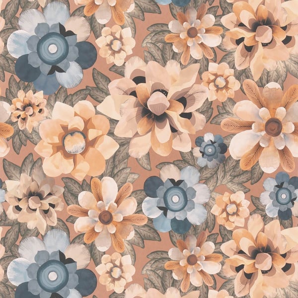 Vallarta's floral motif, which has the appearance of a watercolour painting, consists of dense clusters of poppies and cosmos flowers. This Christian Lacroix wallpaper captivates with its opulent design in a soft colouring. The flowers vary in scale, and are displayed on a background that is sometimes light, sometimes dark. Some variations have a metallic background.