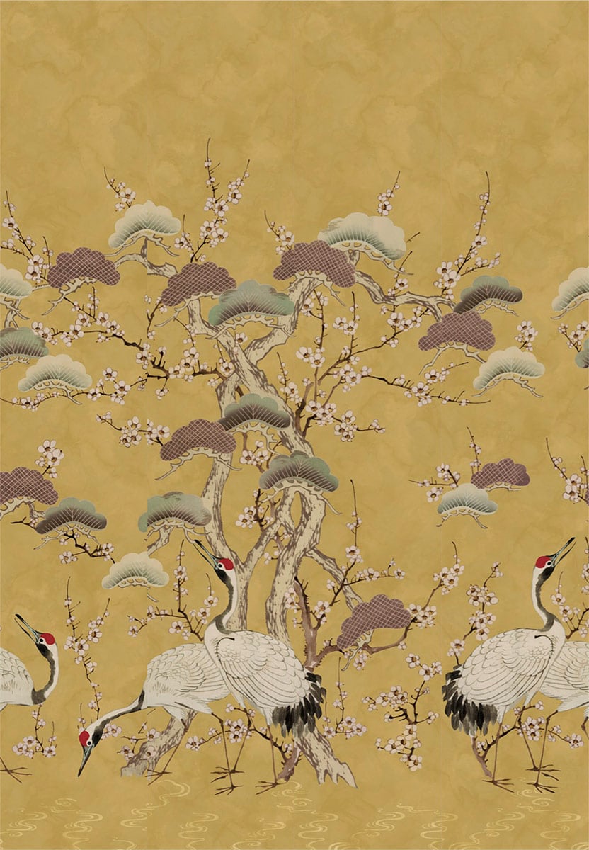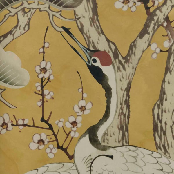 Kyoto Blossom est un papier peint panoramique élaboré par la maison 1838. Il instaure sur les murs une scène spectaculaire qui honore l’artisanat traditionnel japonais. Inspiré d’un kimono archivé, il dépeint la splendeur des oiseaux et des cerisiers en fleurs qui se reflètent dans l'eau, tandis qu'une texture en forme de nuage sur l’arrière-plan ajoute de la profondeur et de la dimension.