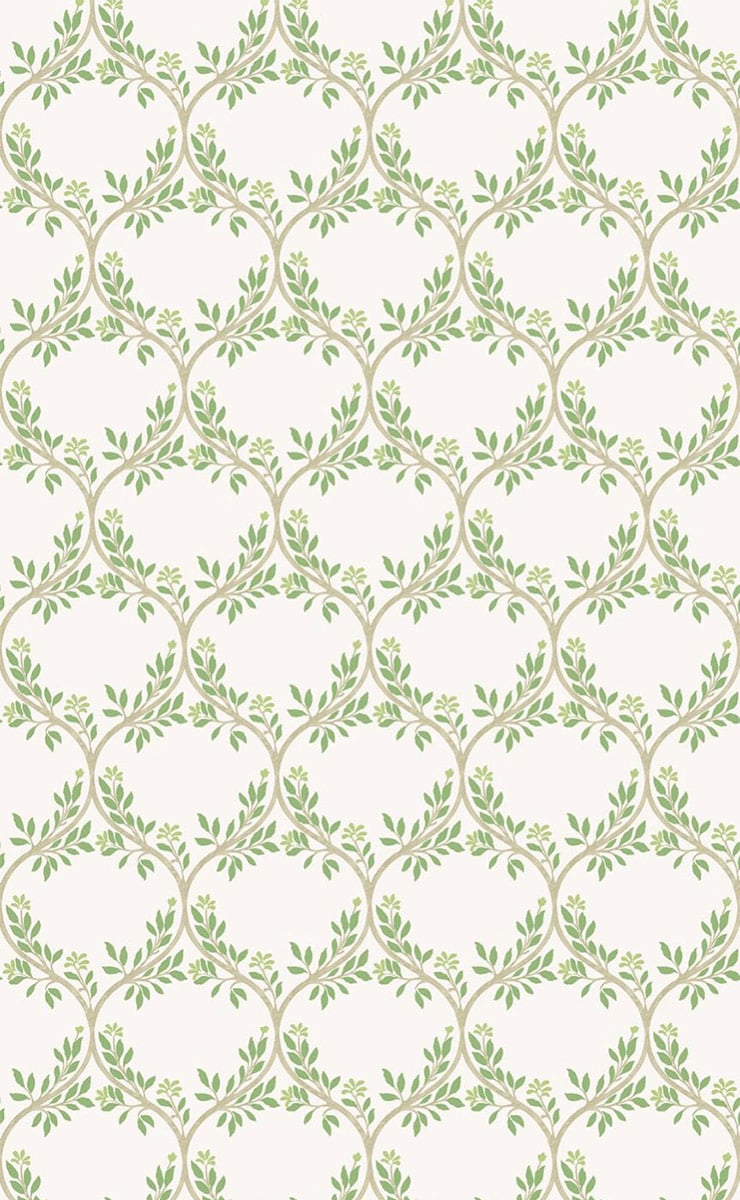 Le papier peint Arber se distingue par des tiges fleuries qui s’entrecroisent pour donner un motif en treillis. Celui-ci donne de la hauteur aux murs avec ses formes ogivales et ses feuilles orientées vers le plafond. Afin d’alléger ce jeu de verticalité, Osborne and Little aère les figures et dévoile ainsi le fond clair qui agrandit visuellement les pièces.