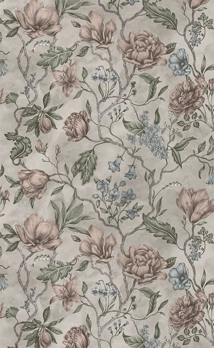 Signé Sandberg, le papier peint Linda est une œuvre intemporelle et raffinée qui transporte les intérieurs dans un univers romantique et harmonieux. Le motif floral classique se compose de magnolias, de myosotis et de roses soigneusement dessinés à la main. Il est sublimé par des couleurs profondes, sobres et crayeuses qui créent une ambiance douce et apaisante. L’artiste Sara Bergqvist réalise ce design dans un esprit vintage.