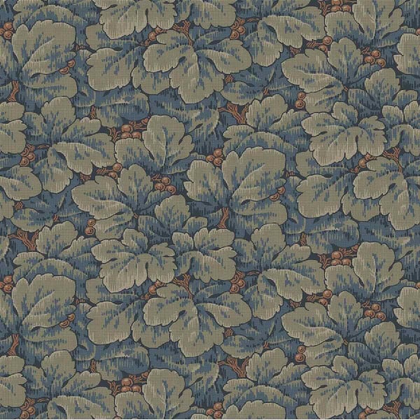 Le papier peint Waldemar, inspiré des tapisseries luxueuses du XIXe siècle, arbore des feuilles trifoliolées aux couleurs mates et sourdes. Il s’agit d’une reproduction d’un motif ancien, avec une grille pixellisée qui donne un aspect fibreux à la surface. Cette illusion de textile aux teintes ternies donne un charme antique à l’ensemble, outre l’ambiance feutrée typique des modèles Borastapeter.