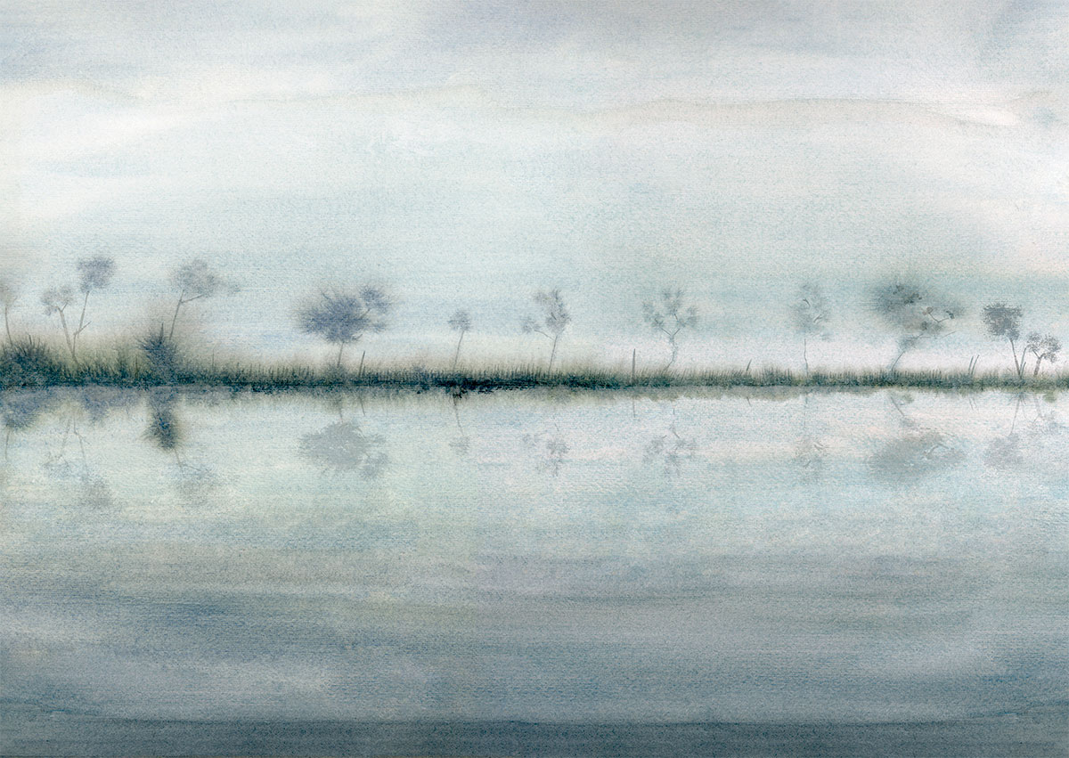 Le décor mural Boira dévoile un paysage mystérieux enveloppé par un manteau de brume. Des plantes semblent danser au gré du vent, bordant un lac endormi avec leurs reflets bien visibles. Ce papier peint panoramique signé Très Tintas raconte une scène de nature au petit matin ou au milieu de la nuit, et empreint les murs d’une touche de mélancolie.