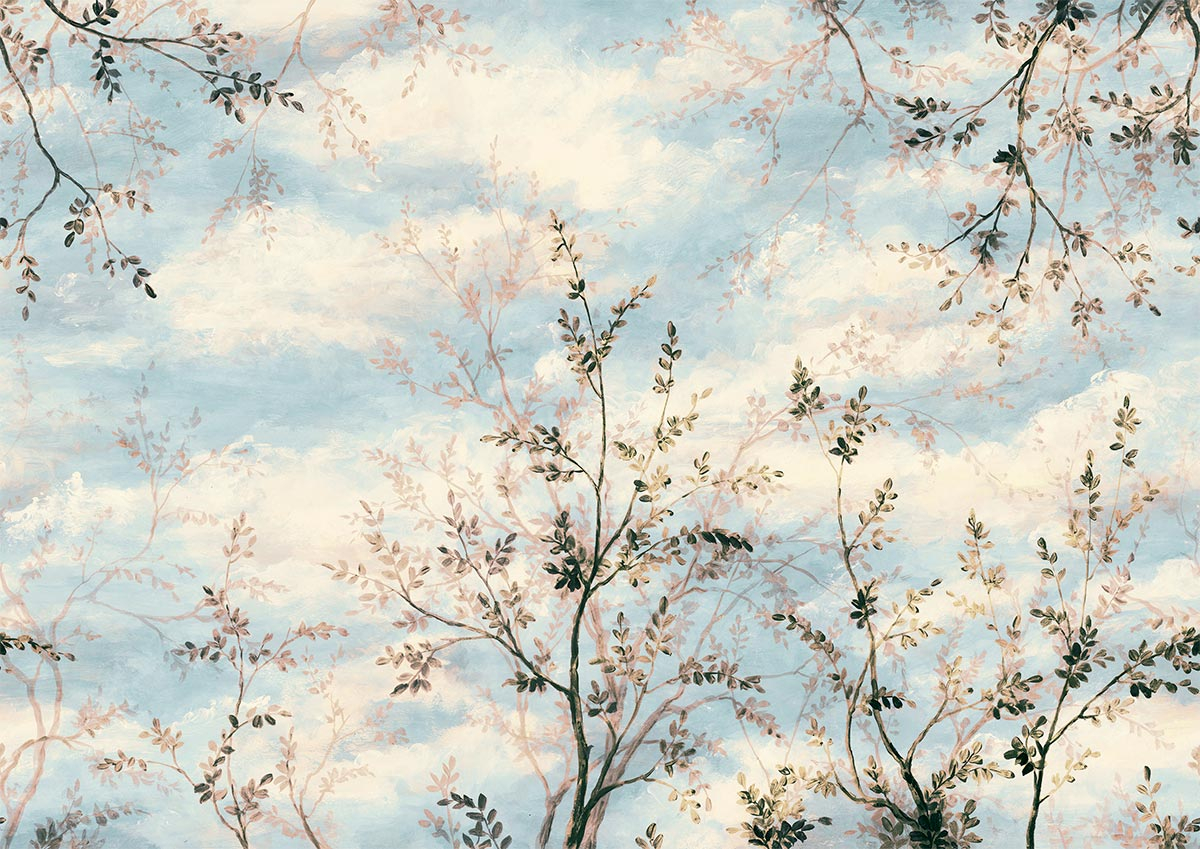 Conçu par Très Tintas, Eon est un papier peint panoramique qui capte l'essence de la nature dans un motif floral photographique. Les branches fines et gracieuses d'arbres élégants s'entrelacent avec des nuages vaporeux qui se fondent dans un ciel bleu. Les couleurs douces et naturelles de ce décor mural transmettent une sensation de tranquillité.