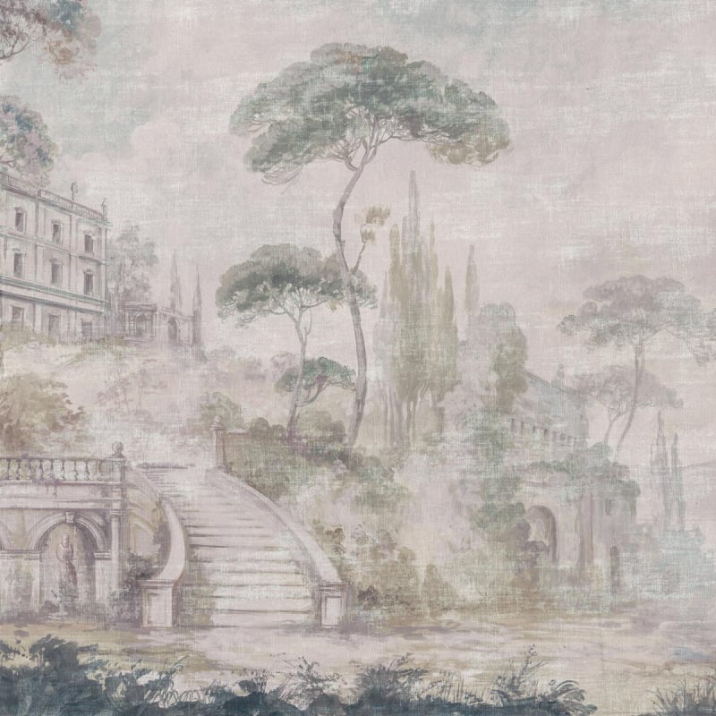 C’est inspiré par la végétation et l’architecture élégantes des bords du lac de Garde dans les Alpes italiennes que le designer Gio Bressana pense le motif du papier peint panoramique Lago di Garda. Invitant à la contemplation, il se décline dans plusieurs teintes vaporeuses.