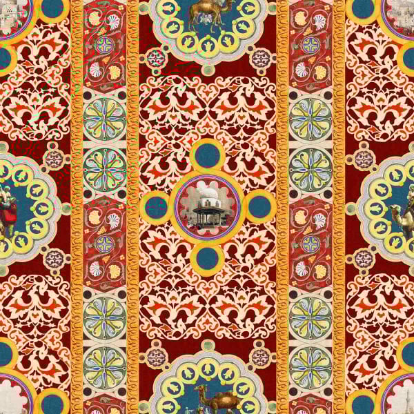 Arab World è una carta da parati panoramica di Mindthegap, che seduce con il suo motivo colorato. Realizzato in stile etnico, questo disegno policromo si riferisce alla ricchezza culturale delle regioni del Maghreb. Riunisce vari elementi decorativi come mazzi di fiori decorati, figure floreali disposte artisticamente e fregi squisitamente dettagliati.