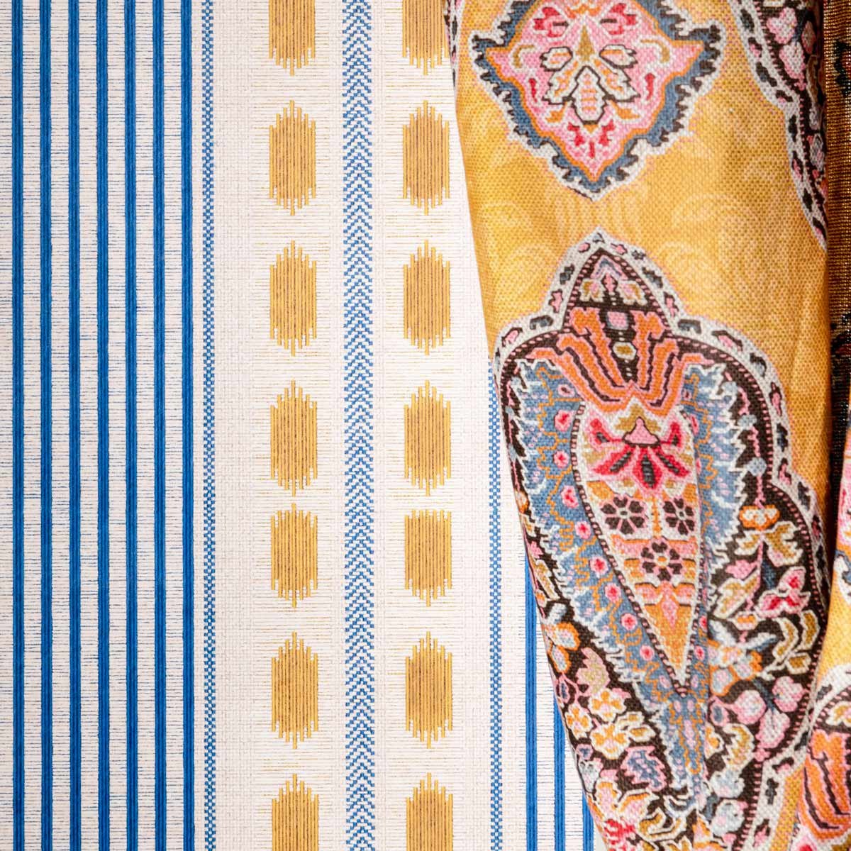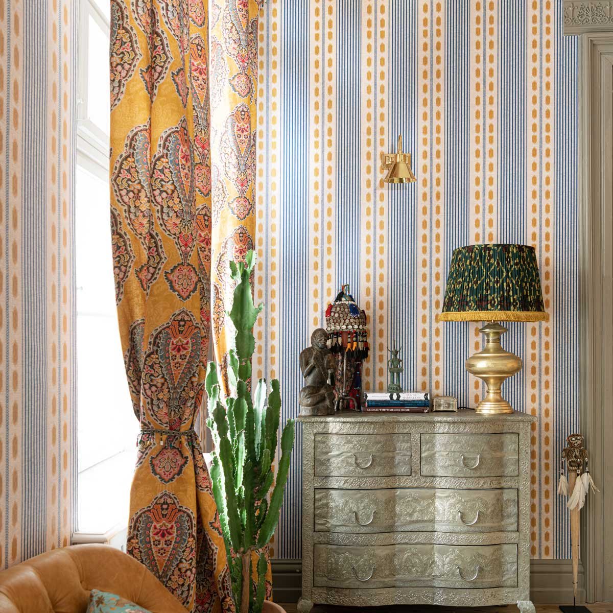 Signé Mindthegap, le décor mural Mouassine arbore un motif géométrique faisant référence à l’architecture de Marrakech. Sa surface est parée de rayures monochromes, ponctuellement séparées par des colonnes d’ornements. L’éditeur s’inspire également des tapis berbères pour créer ce design ethnique. Les couleurs empruntées se contrastent et se complètent, créant un tableau discret et hautement décoratif.