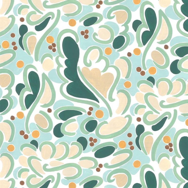 Graphique, la composition du motif du papier peint Marie révèle des formes végétales arrondies. Doux et poétique, il est originalement peint par l’artiste Claire de Quénetain dans une palette de couleurs contemporaines.