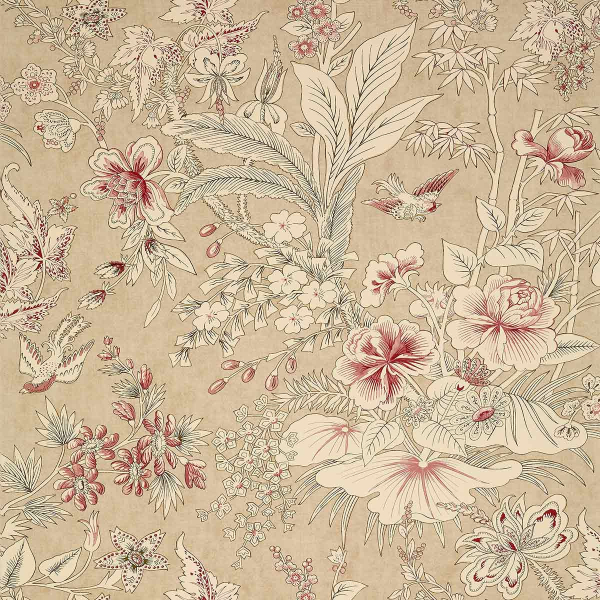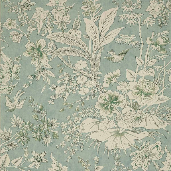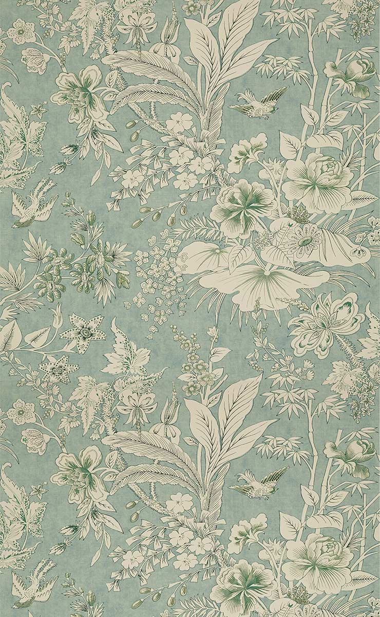 Le papier peint Rosalind de Thibaut séduit par un motif floral aux couleurs tonales. Il présente des grappes de bourgeons, des fleurs aux formes généreuses, des feuilles luxuriantes et des oiseaux. Les figures, exprimées dans un style jacobéen, rappellent nostalgiquement les tapisseries anglaises du XVIIe siècle. Il ajoute un charme antique aux murs, outre l’effet apaisant de ses teintes sobres.