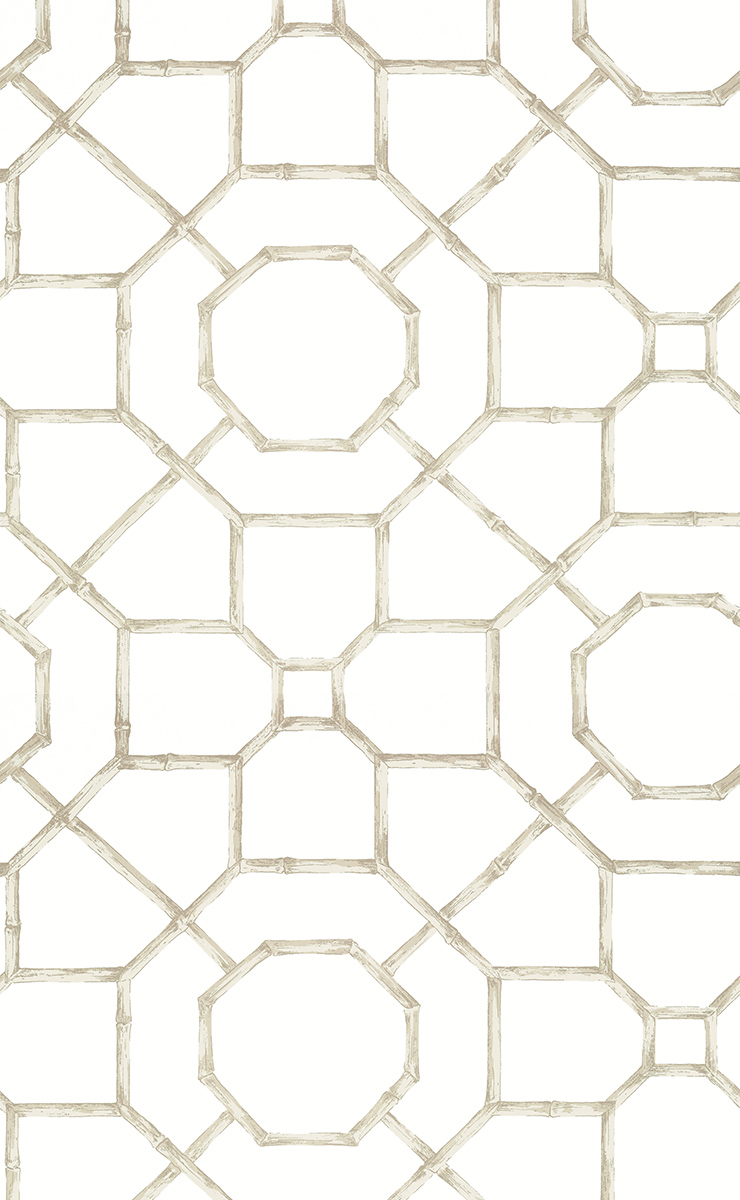 Le papier peint Arbor, un modèle signé Thibault inspiré de la culture asiatique, présente un motif en treillis de bambou. Les tiges s’assemblent pour former une grille de figures géométriques, allant des carrés aux octogones. Leur entrelacement créatif et aéré, dépeint dans une couleur douce sur fond clair, dégage une élégance intemporelle.