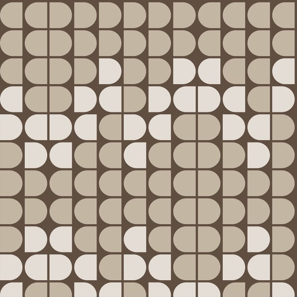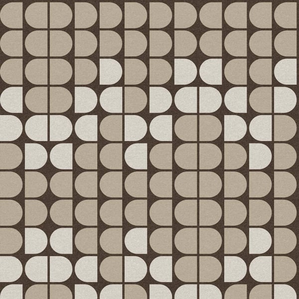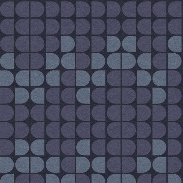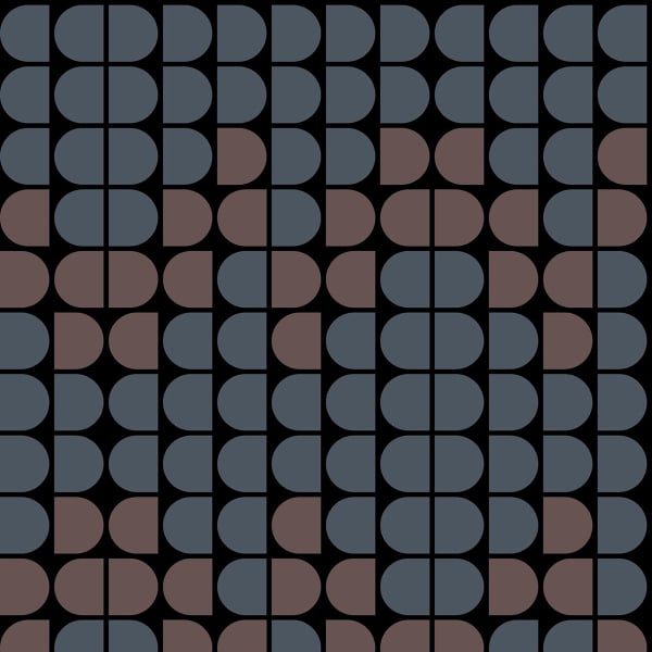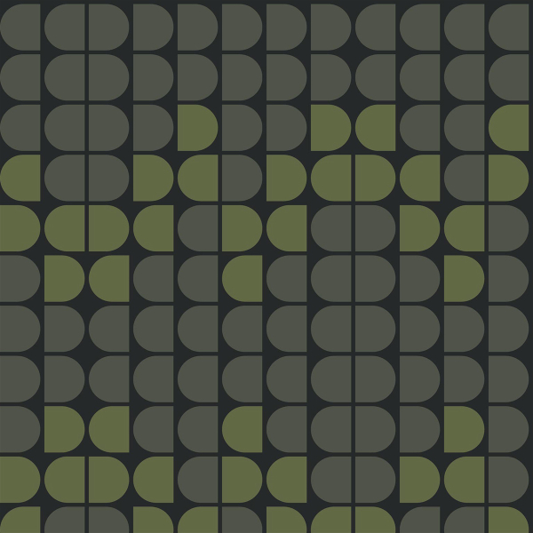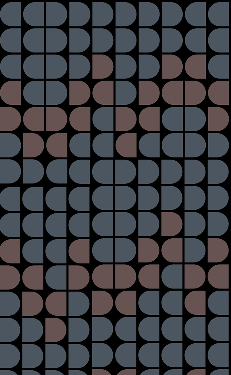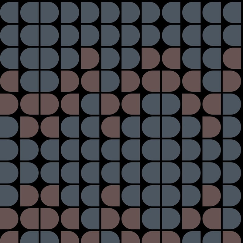 Le papier peint Créatone 2451, réédité par Papier Français, présente une succession de demi-ovales alignées de façons adjacente et opposée. Si certaines sont alignés comme des écailles, d’autres forment un ovale entier. Cette variation de figures, rehaussée par la couleur sombre du fond, ajoute du dynamisme au modèle. Des lignes perpendiculaires séparent également chaque demi-ellipse, créant ainsi un jeu de carreaux.