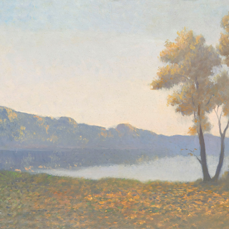 Ce papier peint panoramique présente un paysage captivant, créant une composition harmonieuse et équilibrée. Sur le côté, un arbre majestueux se dresse fièrement. À l'arrière-plan, une colline se reflète dans l'étendue d'un lac paisible. Matin sur l'étang est une œuvre d'Alphonse Osbert datant de la fin du XIXe siècle. Elle se présente comme une fenêtre sur un paysage reposant.
