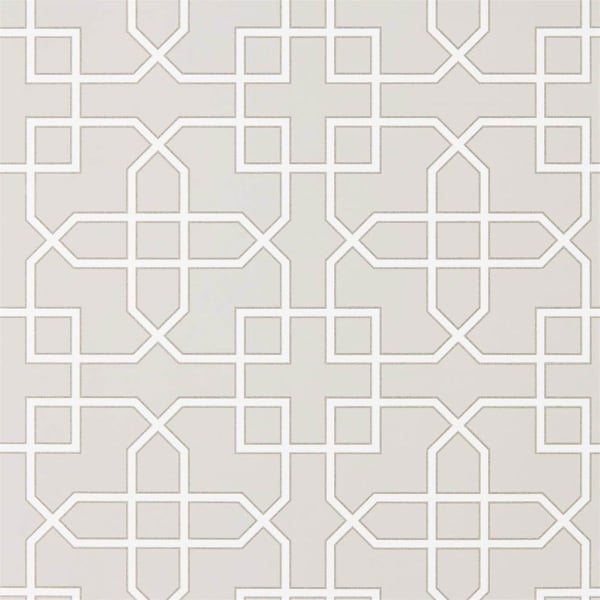 Nommé d'après le célèbre labyrinthe de Hampton Court, le papier peint Hampton Trellis de la maison Sanderson est une véritable œuvre d'art inspirée par l'élégance de l'art déco. Son motif géométrique structurel se compose d'un treillis bicolore, créant un tableau visuellement captivant. La coloration subtile ajoute une touche de sophistication, tandis que l'impression en rotative offre un fond opaque crayeux qui contraste magnifiquement avec les détails métalliques et pailletés du dessin.