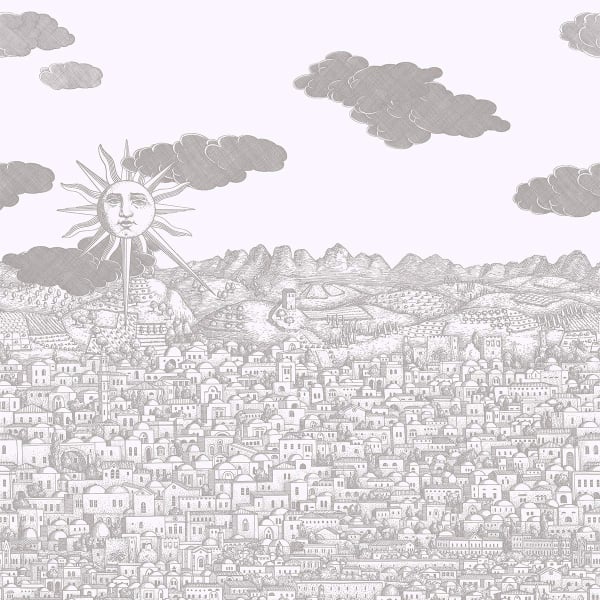 Ce papier peint Cole and Son est un voyage onirique et envoûtant au-delà des limites de l'imaginaire, nous entraînant dans une ville ensorcelante et hypnotique. Un motif captivant qui présente une vue panoramique. La ligne noire précise des bâtiments dépeint une imagination sans limites. Le dessin original a été créé par Piero Fornasetti pour le hall d'entrée de sa résidence milanaise à la fin des années 1940. Le ciel lumineux crée une transition du jour à la nuit et ajoutant une atmosphère mystérieuse à la scène.
