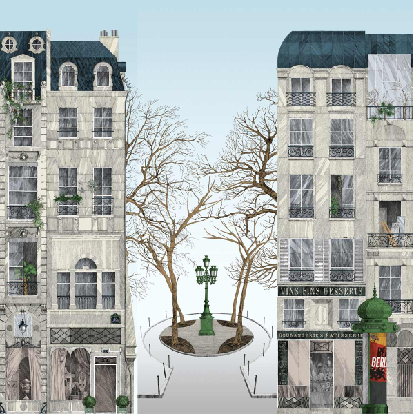 Ce papier peint panoramique illustre un immeuble classique baigné dans la lumière éclatante de la période estivale. L'appartement, avec son architecture élégante et intemporelle, se dresse fièrement au cœur d'une rue bordée d'arbres. Les fenêtres ouvertes laissent entrevoir des plantes. La verdure orne les rebords de fenêtre, ajoutant une touche de nature et de fraîcheur à l'ensemble. L'ambiance chaleureuse et paisible de l'été est renforcée par les tons chatoyants. Ce modèle intissé proposé par Edmond Petit transporte au cœur de la rue Jacob.