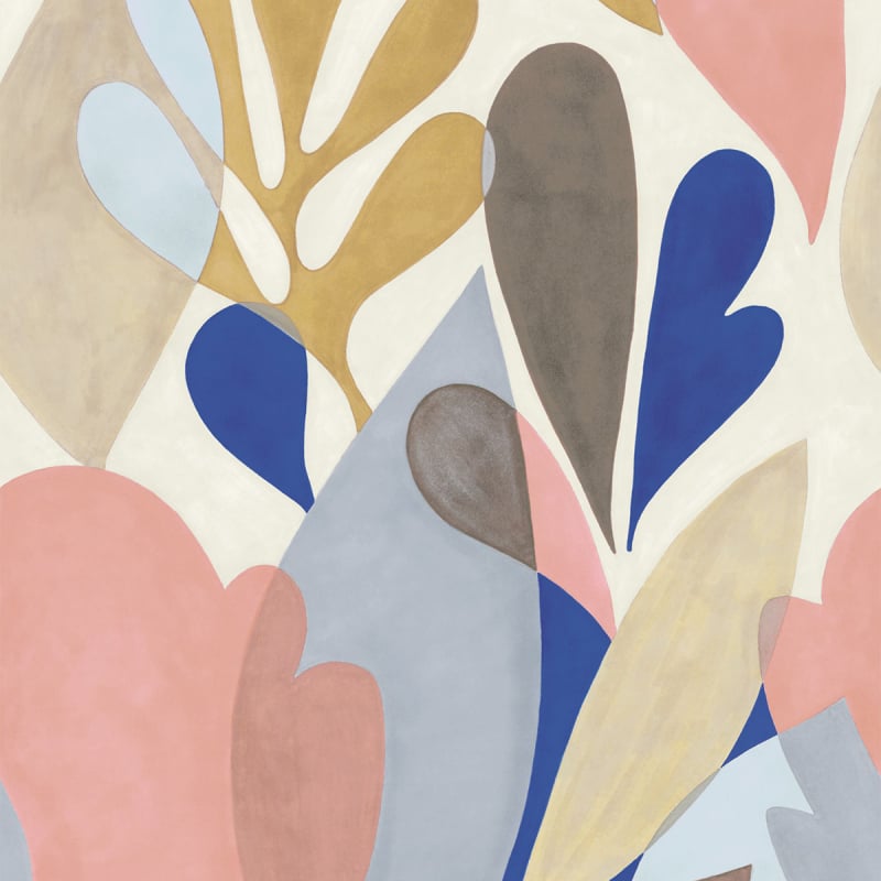 Semblable à une fresque murale, Dancing Colours affiche de grandes feuilles abstraites aux tons pastel. Les figures, d’un aspect d’aquarelle, sont inspirées d’un célèbre collage réalisé par l’artiste français Henri Matisse. Casedeco le reproduit en version panoramique, avec quelques retouches de formes et couleurs. Celles-ci semblent danser comme des flammes, animant le mur avec leur vivacité.