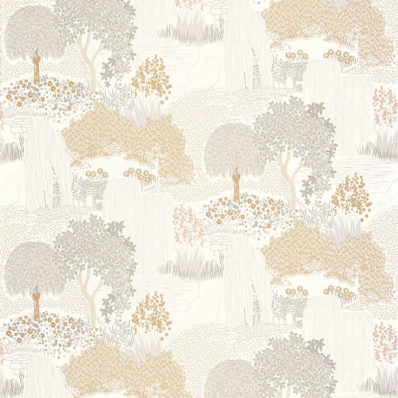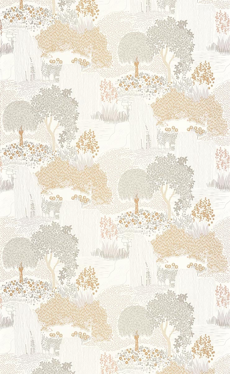 Le papier peint Niwa, un mot japonais signifiant jardin, dévoile le coin de nature caché derrière les maisons de Kyoto. Il montre des cascades d’eau, des fleurs, des saules pleureurs et d’autres arbres taillés en boule. Casadeco dépeint les figures dans des teintes sourdes rapprochées, afin d’alléger le visuel et créer un effet reposant.