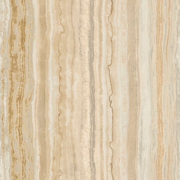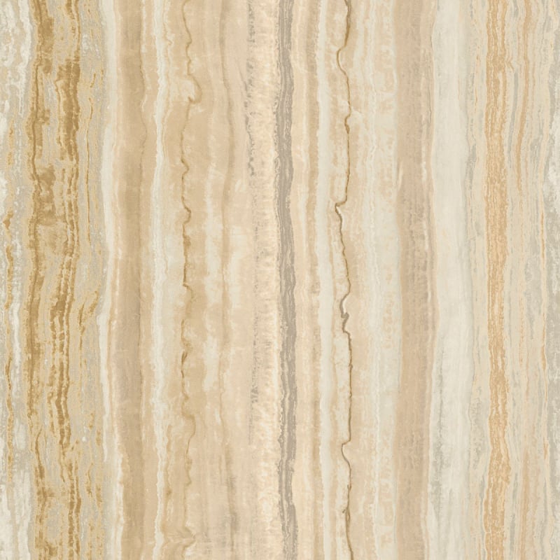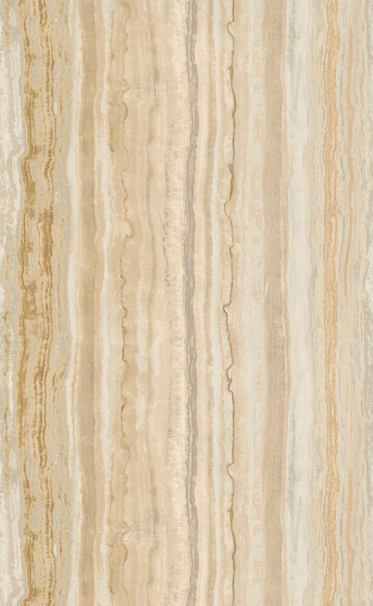 Onyx, un papier peint minéral signé Casadeco, présente des rayures légèrement ondulantes imitant les strates de l’agathe éponyme. Les raies sont affichables à la verticale pour rallonger les murs, ou à l’horizontale pour les élargir. Leurs tonalités sourdes contrastent avec le fond clair du modèle bichrome, mais il existe également des versions multicolores plus égayées.