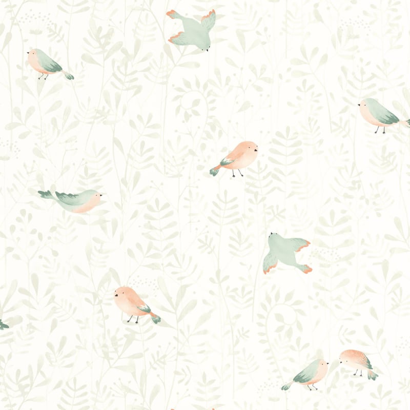 Casadeco propose de petits oiseaux qui survolent une forêt de fougères pour le papier peint Flying Bird. Ces hôtes sympathiques s’invitent dans les intérieurs, qu’ils égaient avec leur plumage multicolore et leurs gazouillis. Les figures sont disponibles en plusieurs versions de couleurs, toujours avec la fraîcheur des tons pastel pour adoucir l’ambiance.