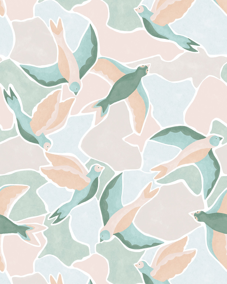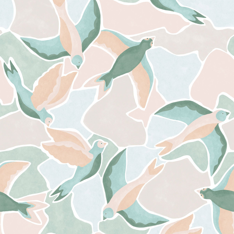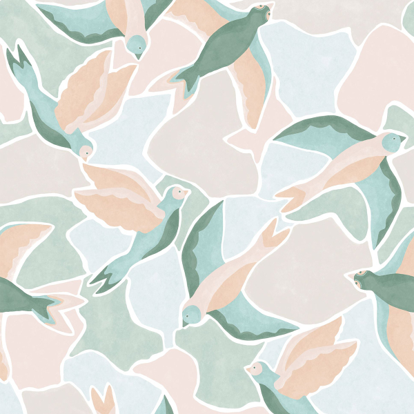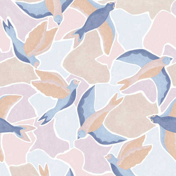 Le papier peint panoramique Songerie invite à la rêverie. Il ouvre sur un ciel imaginaire survolé de grands oiseaux abstraits aux plumages multicolores. Casadeco insiste sur la douceur en proposant une palette de tons pastel, dont la luminosité est renforcée par le contour blanchâtre des figures. Le modèle donne ainsi une sensation de légèreté, tout en stimulant la créativité.