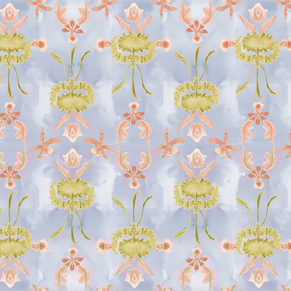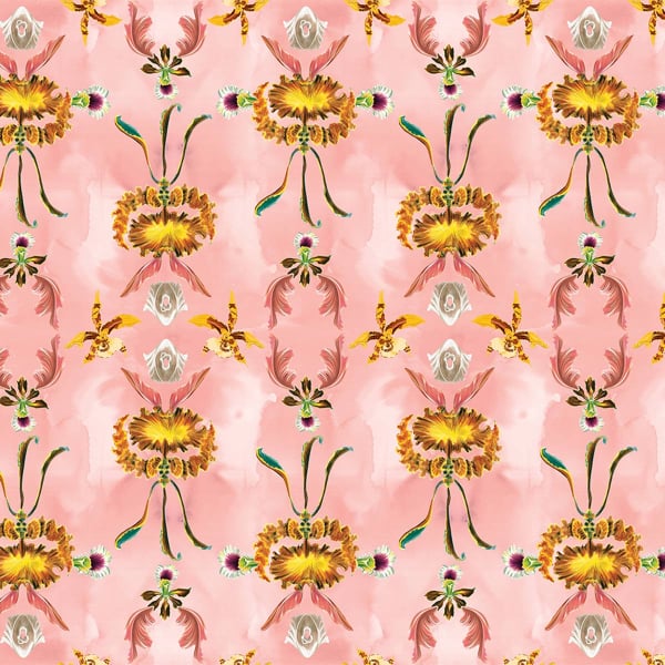 Le papier peint Flower Grotesque de Texturae présente une composition de fleurs fantaisistes, des feuilles en trépied, des corolles flottantes semblables à des oiseaux, etc. Les figures, moins carnavalesques, montrent un certain raffinement. Elles sont teintes de couleurs douces sur un fond délavé, dévoilant un côté féminin à l'image de la créatrice Sara Ricciardi. Fabriqué en vinyle avec un support intissé, il est facile à poser et à entretenir.
