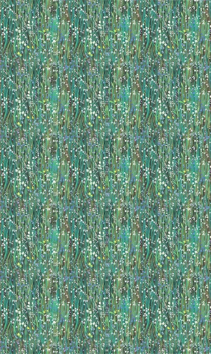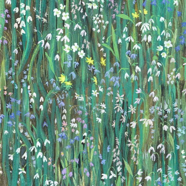 Le papier peint panoramique Galanthi de House of Hackney pérennise un avant-goût de printemps dans les intérieurs. Il présente un champ de perce-neiges à perte de vue, qui agrandit visuellement l’espace. Les figures, très réalistes, sont teintes de nuances de vert et de blanc. Des fleurs de crocus aux couleurs ensoleillées figurent également dans la scène, afin d’enrichir la palette.