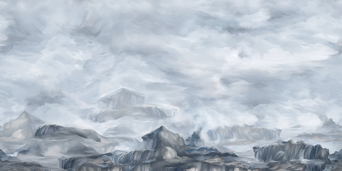 Inkiostro Bianco invite à un dépaysement méditatif avec le motif monochrome du papier peint panoramique Cliffs. Le modèle montre des falaises et sommets de montagnes brumeux sous un ciel brouillé de nuances blanchâtres, insinuant une atmosphère glaciale. Le support en fibre de verre accentue la splendeur de l’altitude, plongeant les intérieurs dans l’inaccessible domaine des dieux.