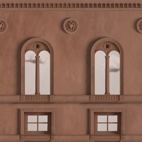 Inkiostro Bianco propose des baies géminées au-dessus de petites fenêtres carrées avec le papier peint panoramique Medicea. Ce modèle trompe-l’œil en fibre de verre, conçu dans des couleurs terreuses par Ovre Design, crée une illusion d’ouverture sur le mur d’accent. Ses voûtes et décors sculptés donnent de la profondeur aux intérieurs, outre un charme antique.