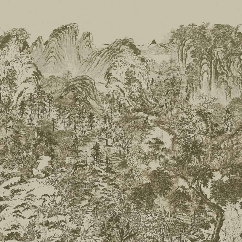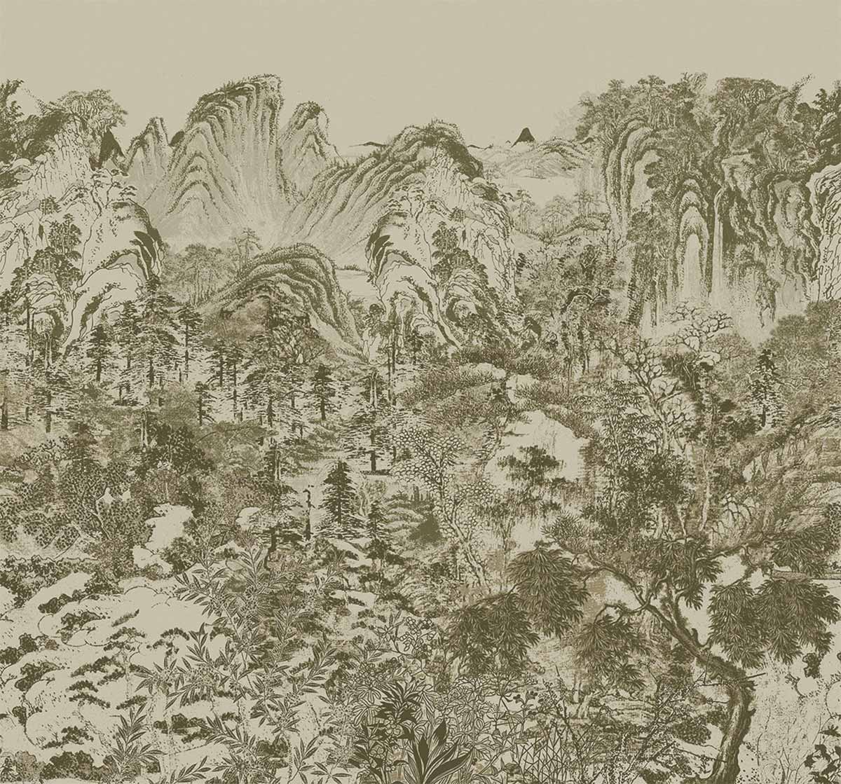 Eijffinger propose une véritable fresque murale à travers son modèle panoramique Misty Mountain. Ce papier peint métamorphose le mur avec son paysage détaillé de montagnes et de vallées aux traits typiquement japonais. Les figures sont illustrées  à la main dans les moindres détails, avec des couleurs tonales monochromes accentuant leur charme antique.