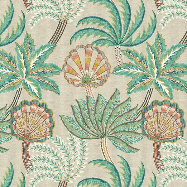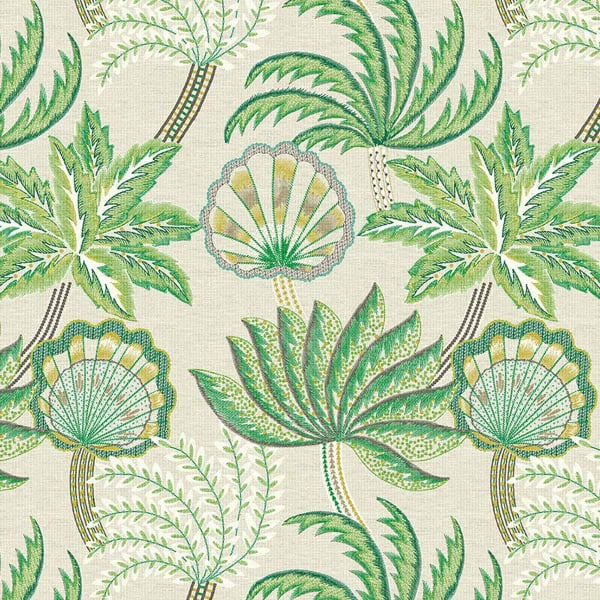 Ravenala d'Osborne & Little est un papier peint au design végétal inspiré de l'arbre du voyageur de Madagascar, également appelé Ravinala. Son motif illustre des plantes et des coquillages stylisés, créant une symétrie harmonieuse. Subtilement exotique, ce décor mural apporte une brise vivifiante à tout intérieur. Ses couleurs naturelles atténuées sont mises en valeur par un fond clair ou sombre qui imite la texture d'une matière artisanale.