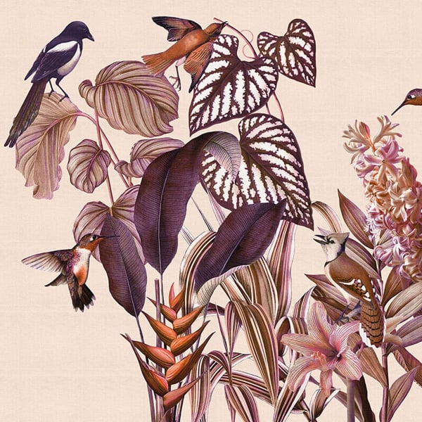 Soulmate, dessiné par Goergia Ricci pour Inkiostro Bianco, est un papier peint empreint de romantisme. Il présente une variété de martins-pêcheurs, des espèces d'oiseaux incarnant la fidélité. Ces alcédinidés animent la scène en battant des ailes, autour de quelques plantes aquatiques aux feuilles panachées. La délicatesse des figures est optimisée de nuances pastel, dans un format panoramique magnifiant leur graphisme.
