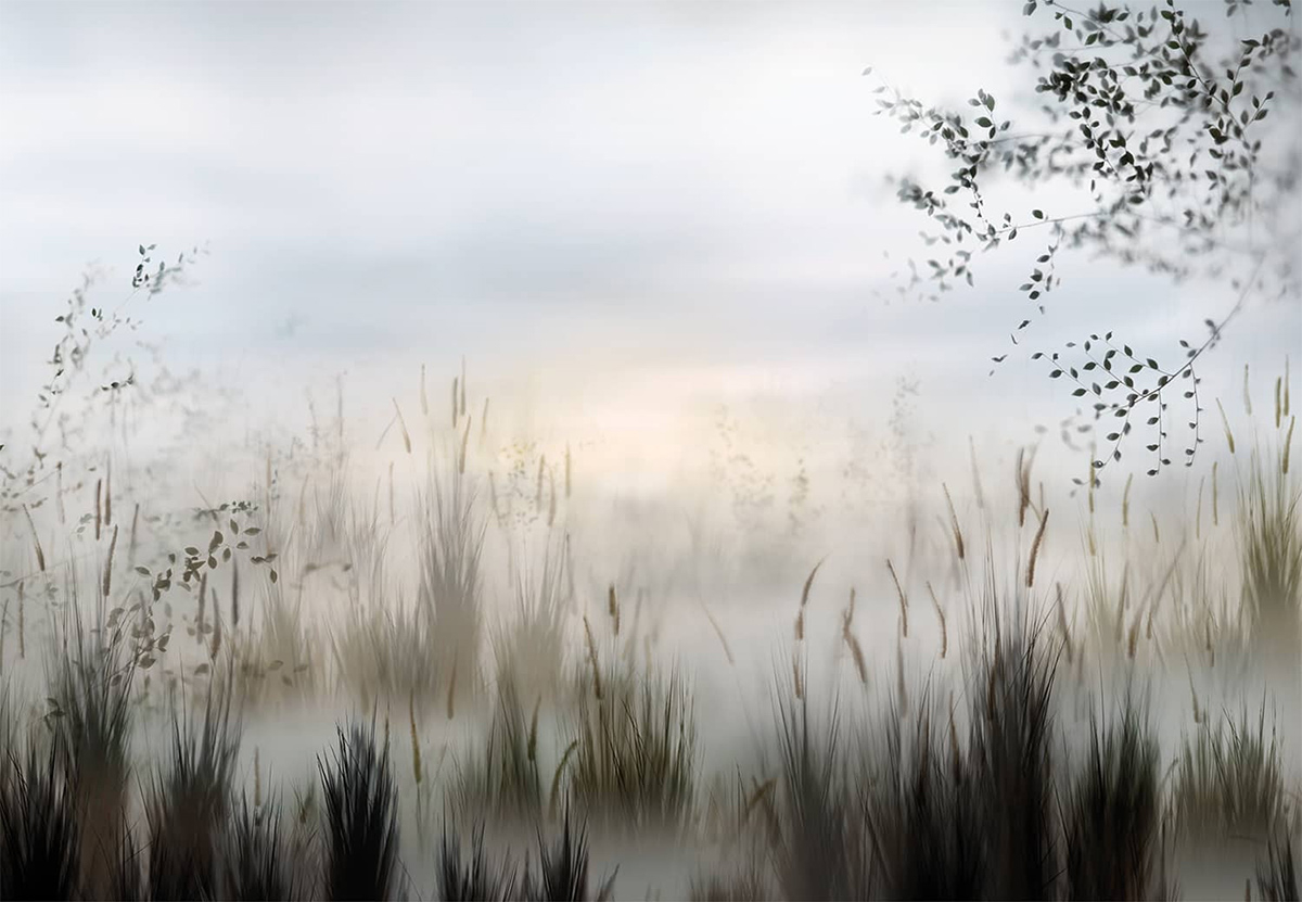 Le papier peint Etang dans la Brume, conçu par Koziel, métamorphose les espaces avec la fraîcheur matinale de son paysage lacustre. Il illustre un étang brumeux bordé de roseaux à massette, à l’ombre de quelques arbustes. Le format panoramique de la scène crée une réelle sensation de proximité, immergeant les intérieurs dans une nature paisible.