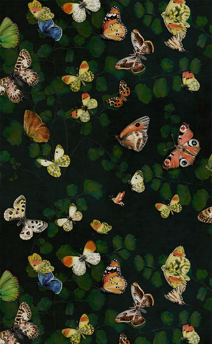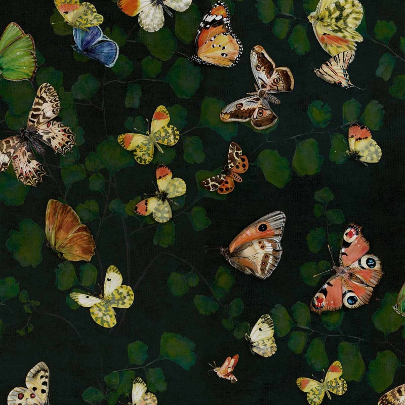 Des papillons multicolores posés sur des feuilles de petite taille forment le design du papier peint Magic Butterflies. Ils adoptent une palette de couleurs naturelles avec des tons vibrants, doux, et neutres qui contrastent avec un fond uni sombre ou clair. Ce revêtement mural signé Coordonné offre un motif romantique.