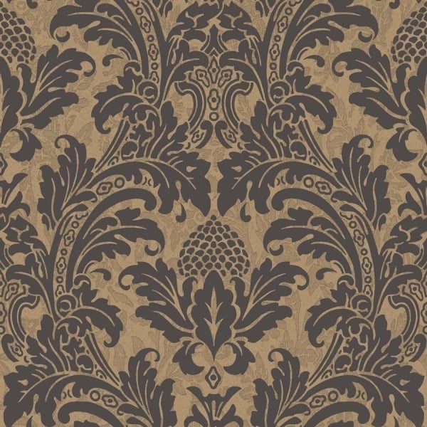 Blake est un somptueux papier peint Cole and Son au motif damassé. L'opulence du dessin métallisé est renforcé par le fond texturé de ce revêtement mural haut de gamme.