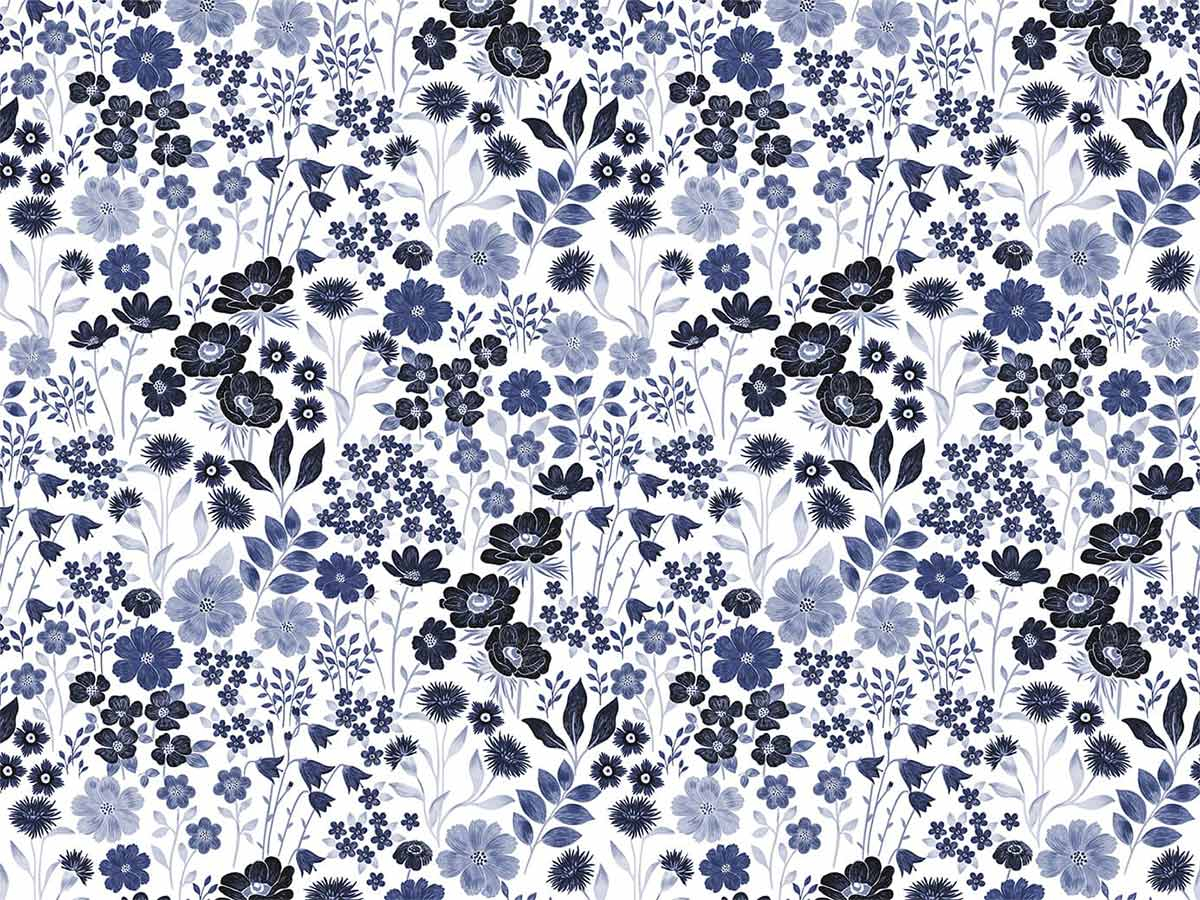Papier peint panoramique Fleurs des Champs Célia Koziel Bleu CUST-CELIA Koziel