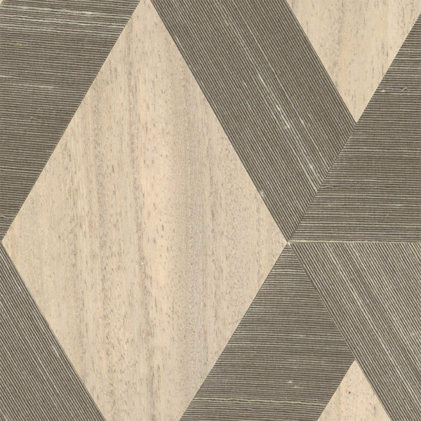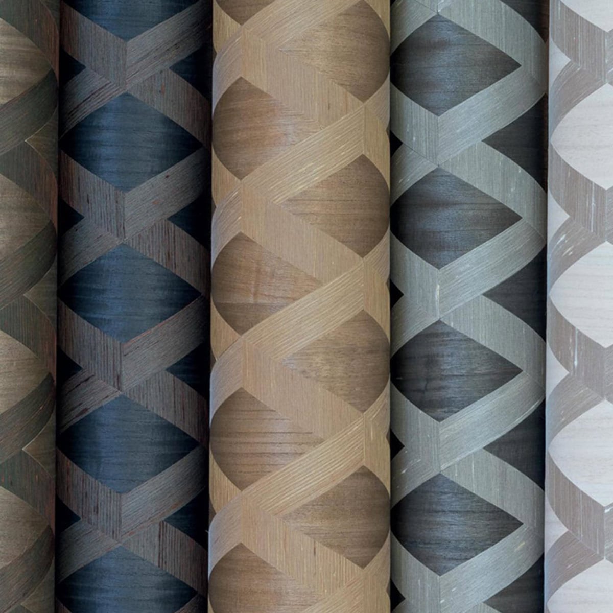 CMO Paris démontre une ingénieuse association du textile et du bois avec le revêtement mural Soie Bois Losange. Le modèle présente de fines plaques en losanges encadrées de bandes de soie pliées. Les deux matières se différencient par un contraste de teintes et de textures, créant ainsi l’illusion impressionnante d’un treillis adossé à une cloison.