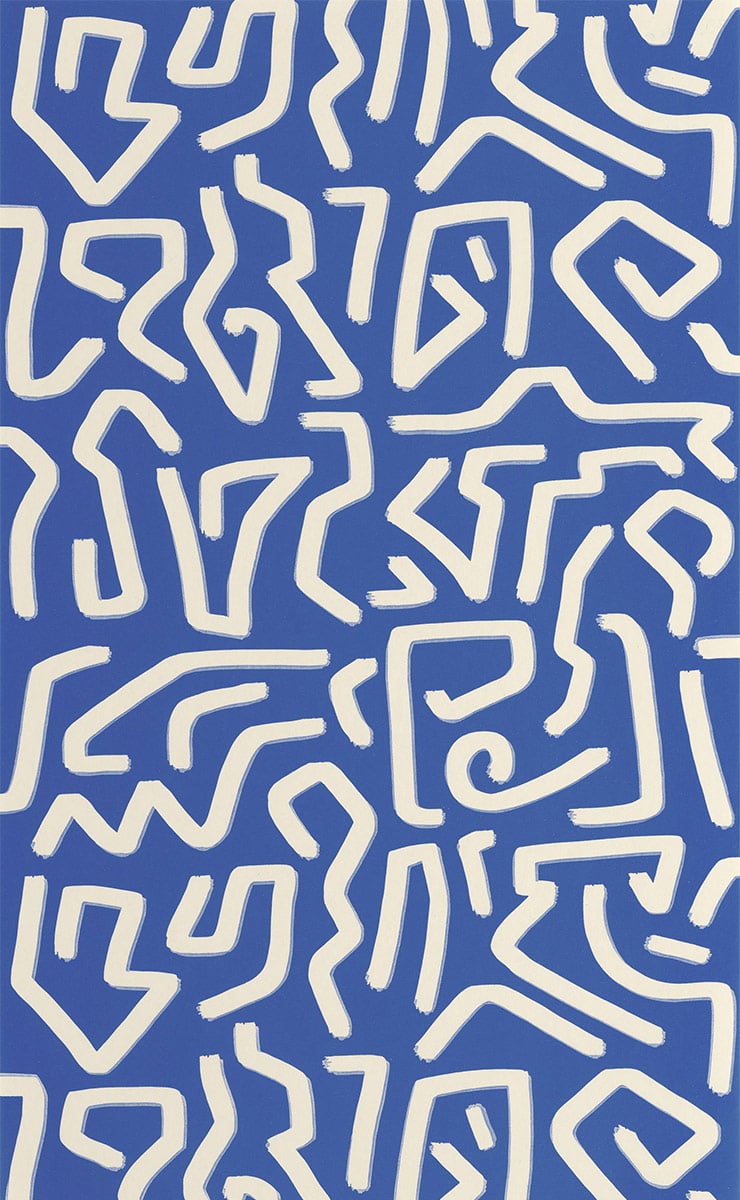 Symbol est un papier peint bicolore créé par Casadeco, en hommage à l’artiste anticonformiste Keith Haring. Le motif présente une myriade de traits qui tournent en spirale, montent et descendent, oscillent à gauche et à droite. Ces mouvements, libres et spontanés, ravivent les espaces. Ils ressemblent à des pictogrammes au charme préhistorique, rehaussant les intérieurs avec leur graphisme.