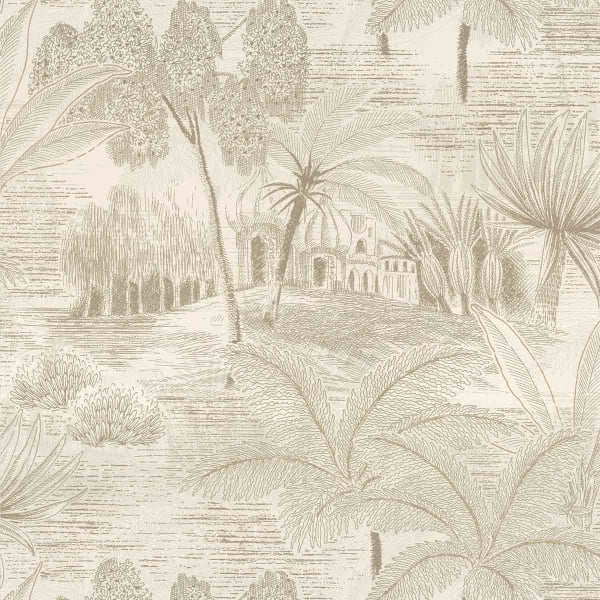 Signé Casamance, le papier peint Baharia invite à l'évasion. Il transporte vers un rivage exotique où les palmiers, les plantes tropicales, un pont et une maison prennent vie avec des détails minutieux. Son style énigmatique et envoûtant se révèle à travers des tracés raffinés, façonnés par quatre films en superposition. La réalisation, sublimée par une encre sablée qui confère du relief, transforme les murs en une toile poétique.