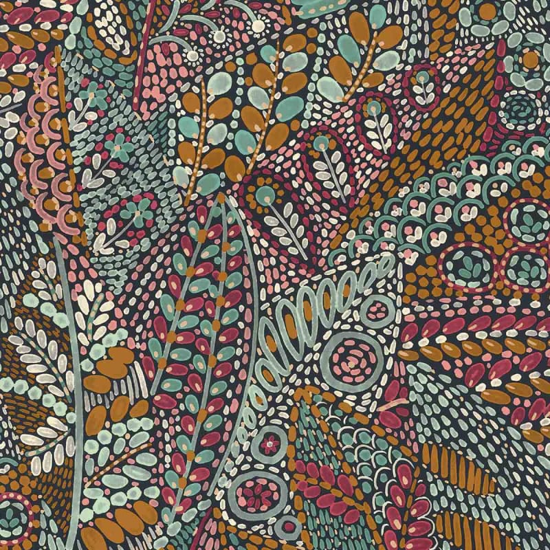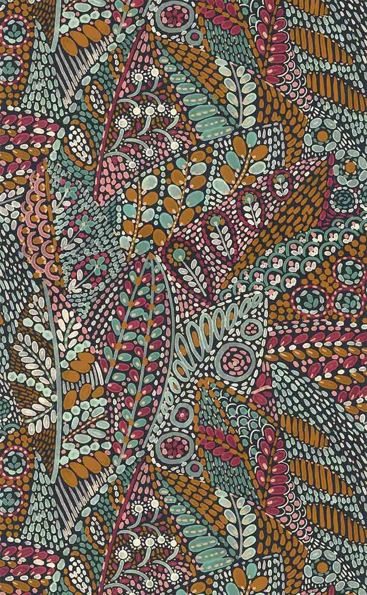 Le papier peint Talavera s'inspire des traditions séculaires de la céramique émaillée au Mexique. Son motif se caractérise par des feuilles et des fleurs ornées de petits détails, créant une composition artistique et abstraite. Les nuances profondes des pigments naturels, associées à des teintes douces, s'entremêlent pour exalter les éléments décoratifs avec un contraste saisissant. Les jeux d'ombres et de lumière ajoutent une dimension visuelle à ce décor mural.