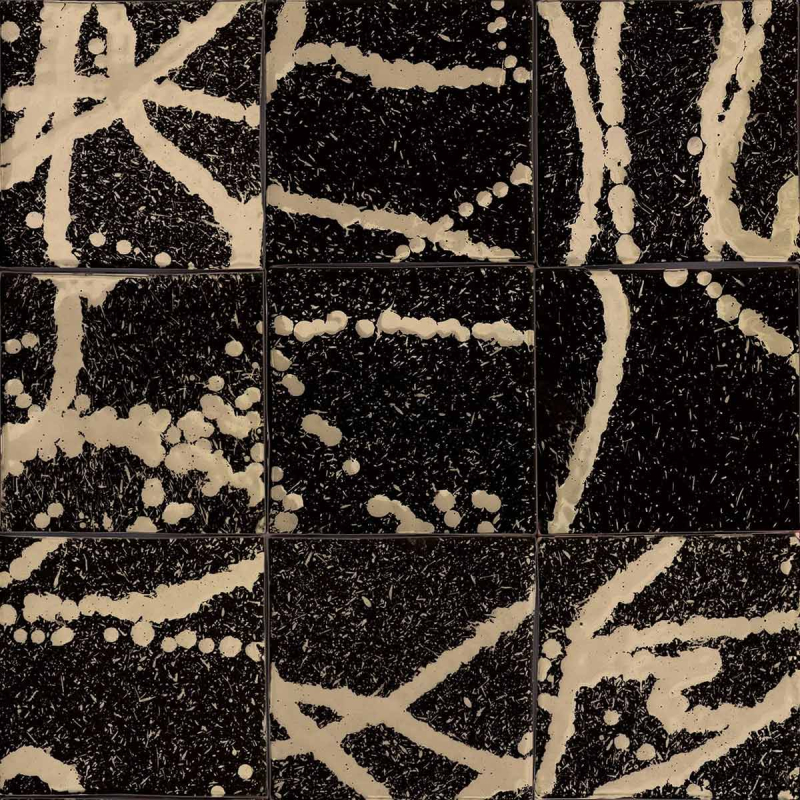 Le papier peint panoramique Homata Zelliges Hammamet, édité par Koziel, associe le motif minéral avec l’esprit graffiti. Il présente un carrelage céramique au reflet lustré, gribouillé de traits et pointillés qui vont dans tous les sens. Le graphisme, accentué par le contraste chromatique avec le fond, apporte du dynamisme aux murs.
