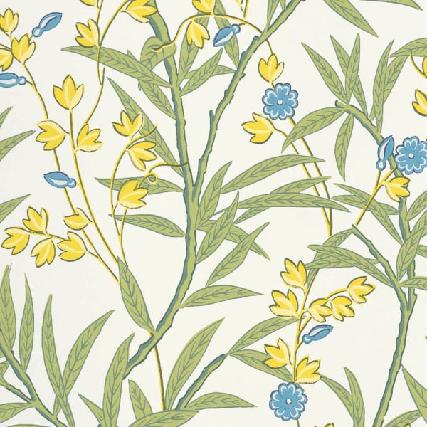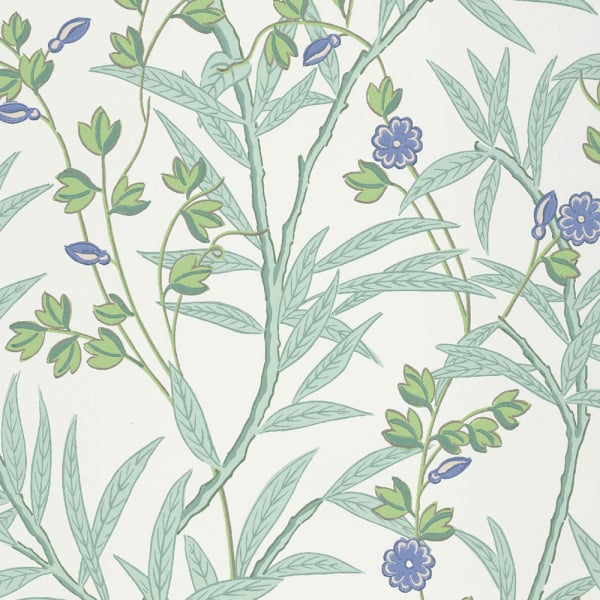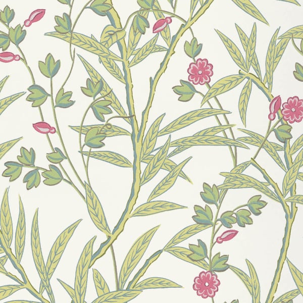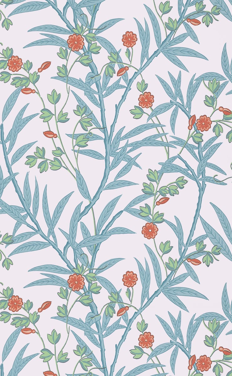 Bamboo Floral plonge les espaces dans une forêt de jeunes bambous parsemés de fleurs grimpantes. Il est inspiré de fragments de papiers peints chinois du XVIIIe siècle, découverts au château de Kingston Lacy à Dorset. Ces morceaux, collés les uns à côté des autres, proviennent de différents modèles. Little Greene les fusionne ici dans un seul motif sublimé de couleurs égayantes.