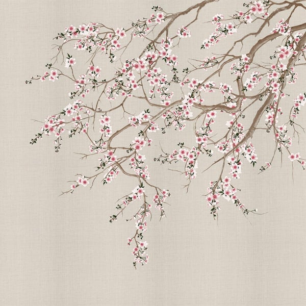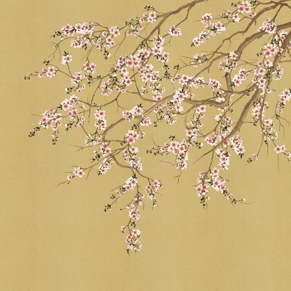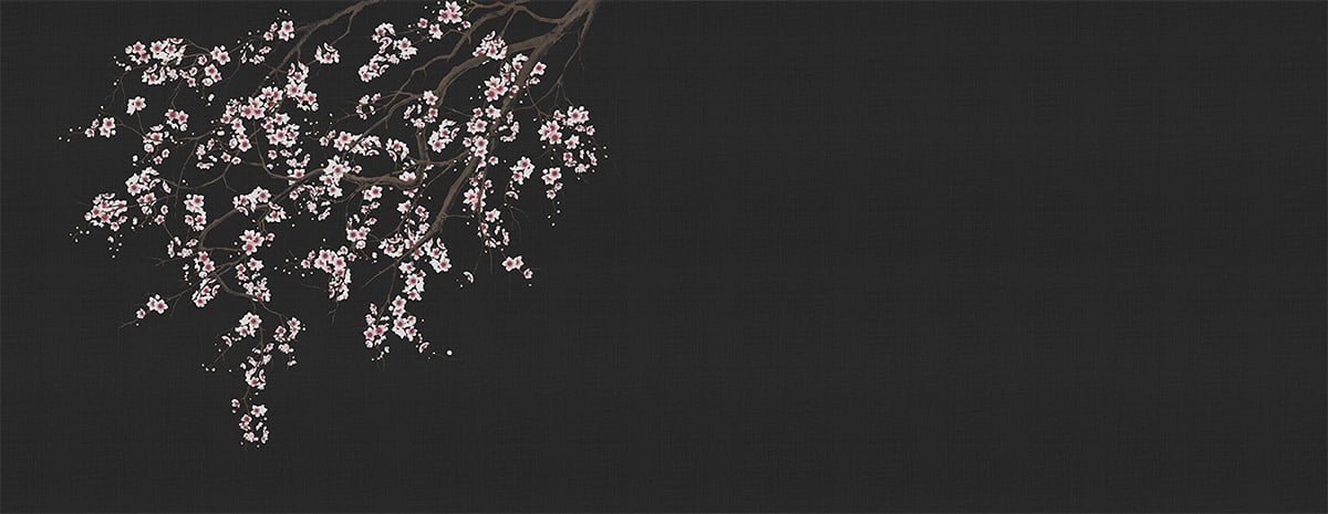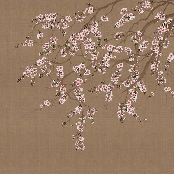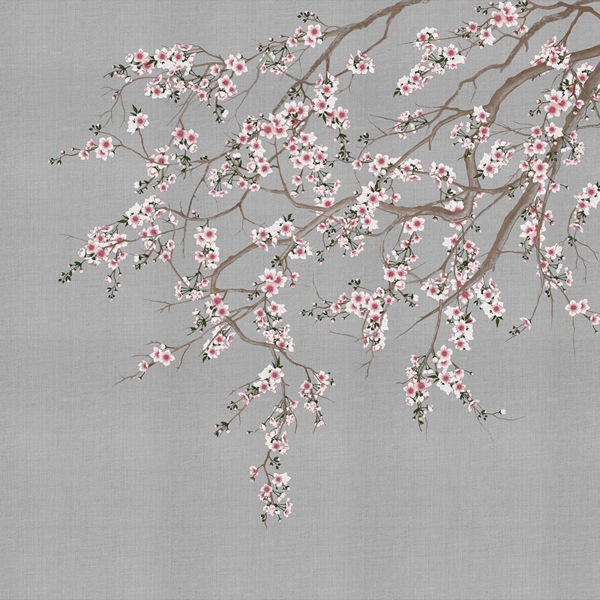 Haori de London Art, un papier peint à la main par Nicola Bottegal, illustre des branches de cerisiers en fleurs qui pendent du plafond. L’arbre semble surpasser les murs pour égayer les intérieurs avec son spectacle printanier. Il imprègne les espaces de sa beauté et de sa vitalité, le tout dans une grandeur nature qui rend la scène plus que réelle.