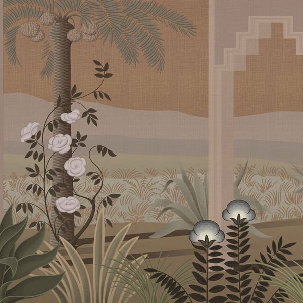 Le papier peint panoramique Distance de London Art transporte dans un paysage fantaisiste, où l'onirisme et l'immersion sont à l'honneur. L'architecture s'efface devant la majesté de la nature, conférant élégance et perspective à l'environnement représenté. Telle une fresque murale d'un talent exquis, ce papier peint capture l'imagination par ses détails minutieux et sa vision artistique unique. Distance se déploie dans des couleurs neutres et pastel.