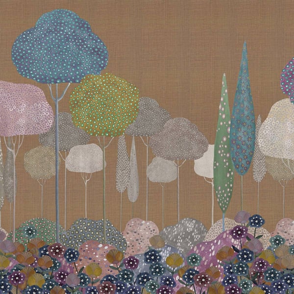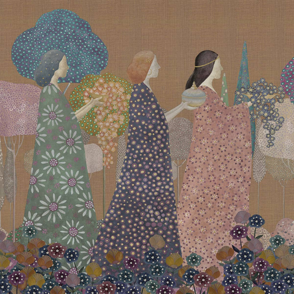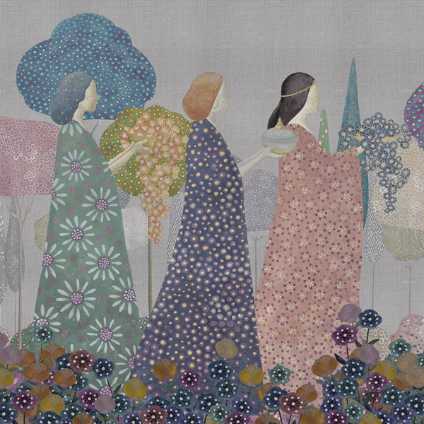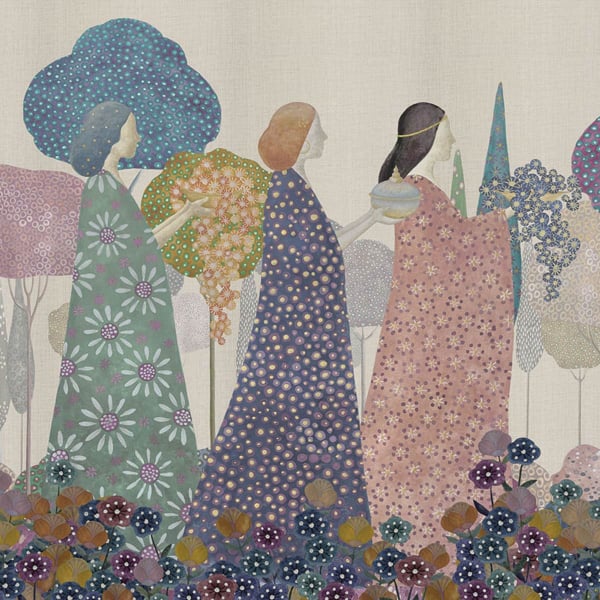 Le panorama Les Princesses de London Art transporte dans un monde où l'imaginaire et la nature se rejoignent. Un cortège solennel de princesses, aux visages stylisés et aux robes somptueusement décorées, évolue au milieu d'une végétation luxuriante. Réalisé avec un souci artistique, ce décor mural crée une ambiance à la fois fantaisiste et sereine. Le fond texturé ajoute une profondeur supplémentaire, donnant l'impression d'une toile vivante.