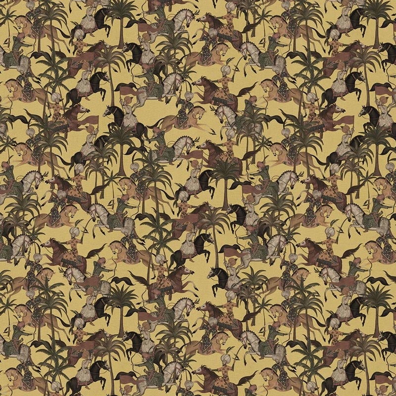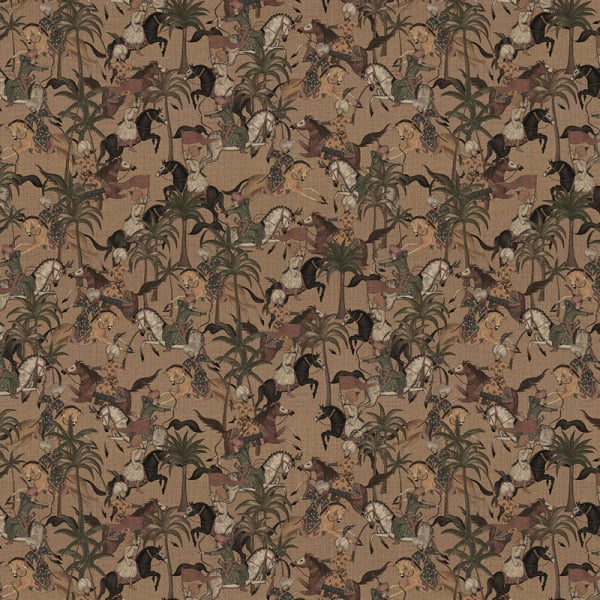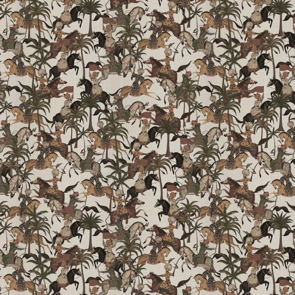 Proposé par London Art, Chevaliers présente une scène frénétique où des cavaliers galopent à travers une végétation luxuriante. Certains semblent attaquer tandis que d'autres brandissent des drapeaux. Ce motif qui se répète à l'infini crée une atmosphère d'épopée vintage, ajoutant une sensation de mouvement et de vivacité aux murs. Réalisé dans des couleurs profondes et neutres, ce papier peint panoramique évoque une époque révolue.