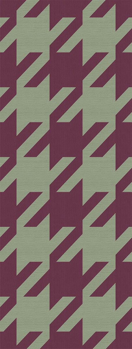 Eijffinger revisite les années 1950 et 1970  avec le motif du papier peint Pied-de-poule. Les carreaux sont agrandis, afin de magnifier le graphisme de leurs lignes obliques. Ces traits diagonaux, accentués par le contraste bicolore, suggèrent le mouvement. Ils apportent de l’audace et du dynamisme aux murs, qui semblent élargis en même temps.