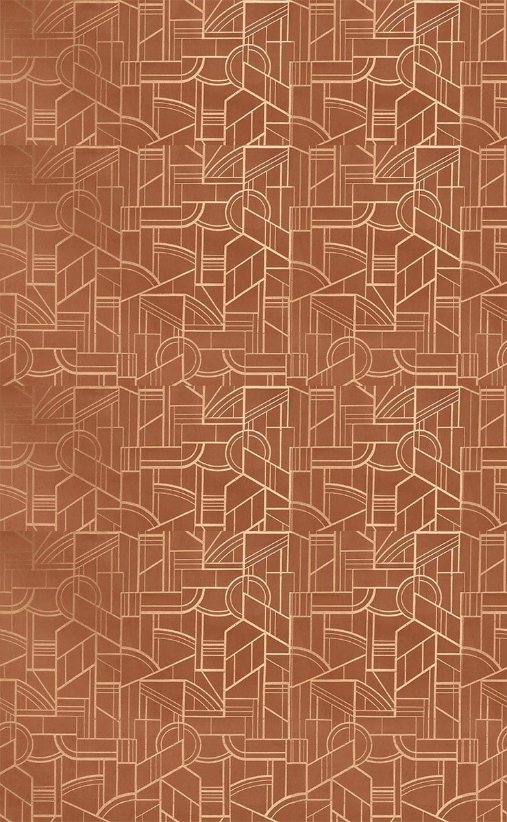 Le revêtement mural Reims est l’hommage de Casamance à une ville française de l’Art déco. Il illustre le style architectural des bâtiments à travers des lignes droites et courbées. Les figures, taillées dans une fine feuille métallique, sont ensuite collées sur du velours. Elles illuminent les murs avec leurs reflets or, dont le contraste avec le fond mat crée une illusion de profondeur.